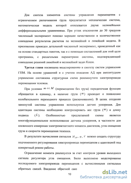 Предметом исследования являются математические модели и методы построения систем управления грузоподъемными механизмами, соответствующие алгоритмы и программы.