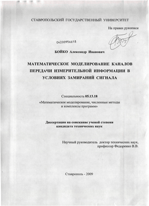 Практическая значимость. Разработанный комплекс математических моделей измерительных каналов и алгоритмов расчета их метрологических характеристик составляет основу метода обеспечения помехоустойчивой передачи измерительной информации в линии связи с компенсацией общих замираний сигналов. Положительность решений по схемной реализации данного метода подтверждены патентами на полезную модель и изобретение.