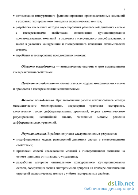 Актуальность темы. Гистерезисные эффекты проявляются в различных областях естествознания: физике, механике, биологии, химии, экономике, и т. д. Поэтому для адекватного и максимально точного моделирования процессов из упомянутых областей гистерезисные явления должны учитываться. Возможность формального описания гистерезисных преобразователей основывается на развитой М.А. Красносельским и его учениками операторной трактовке этих преобразователей как операторов, определённых на достаточно богатых функциональных пространствах, зависящих от своего начального состояния, как от параметра, динамика которых описывается двумя соотношениями: вход-состояние и состояние-выход. Свойства систем с гистерезисом существенно отличаются от систем с функциональными нелинейностями. Это объясняется сложностью и нелинейной структурой пространства состояний гистерезисных преобразователей. Кроме того, математические модели гистерезисных преобразователей, как правило, не являются гладкими, что затрудняет применение классических методов для анализа соответствующих систем. Особое место среди систем с гистерезисными свойствами играют экономические системы. Наличие гистерезисных явлений в экономике отмечалось, начиная с 50х годов прошлого века. Однако, формальное описание в рамках теории систем гистерезисные явления в экономике получили лишь в последние десятилетия. Это объясняется многими причинами, одна из которых заключается в принципиальном отсутствии возможности проведения экспериментов в отличие от технических областей. Поэтому математическое моделирование экономических систем с гистерезисными свойствами остаётся единственным способом изучения и анализа этих систем. В частности, гистерезисный механизм ценообразования, описанный на эвристическом уровне во многих работах к настоящему времени не получил должного формального описания на уровне математических моделей. Также хорошо известен гистерезисный характер спроса в зависимости от соотношения цены товара и покупательской способности. Однако, математические модели, описывающие это отношение к настоящему времени не разработаны. Как следствие, не решены задачи, связанные с оптимизацией производственно-ценовой стратегии в условиях гистерезисного поведения экономических агентов, задача оптимального функционирования производящих компаний в условиях гистерезисного ценообразования и конкуренции. Эти обстоятельства обуславливают актуальность темы диссертации.