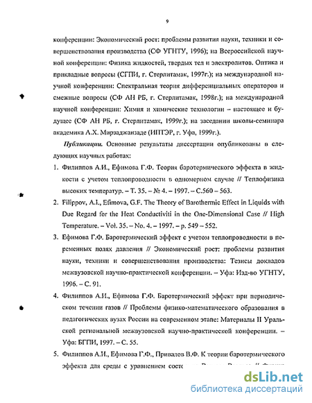 Ефимова Г.Ф. Баротермический эффект с учетом теплопроводности в переменных полях давления // Экономический рост: проблемы развития науки, техники и совершенствования производства: Тезисы докладов межвузовской научно-практической конференции, - Уфа: Изд-во УГНТУ, 1996.-С. 91.