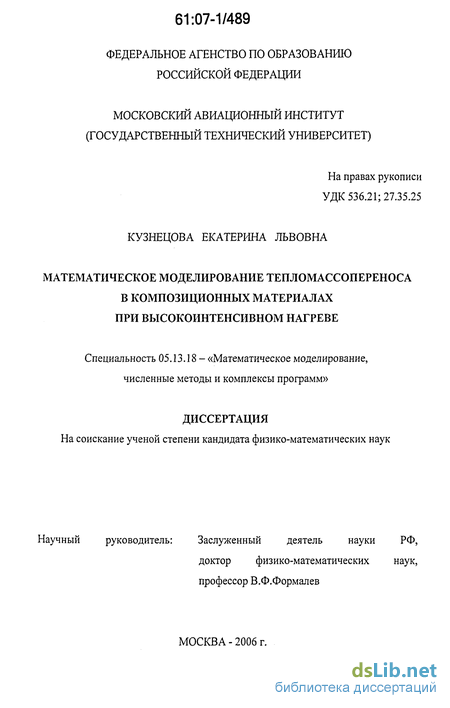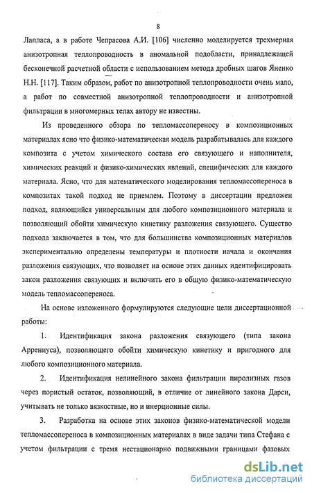 Отсюда видно, что математическое моделирование процессов тепло- и массопереноса в композиционных материалах представляет собой сложную комплексную проблему, которая в полной мере не решена до сих пор и которой уделяется значительное внимание не только теплофизиками, аэродинамиками, материаловедами, но и математиками.