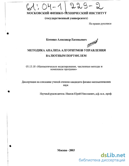 - Методика анализа эффективности различных алгоритмов управления валютным портфелем