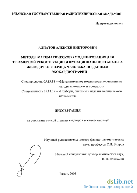 Разработка математической модели описания геометрии желудочков сердца, учитывающая особенности их анатомического строения сердца, является важным этапом в развитии методов трехмерной реконструкции формы желудочков сердца, основанных на использовании минимального числа эхокар-диографических проекций. В связи с этим тема диссертационного исследования является своевременной и актуальной, а внедрение ее результатов способствует продвижению новых технологий в клиническую практику.