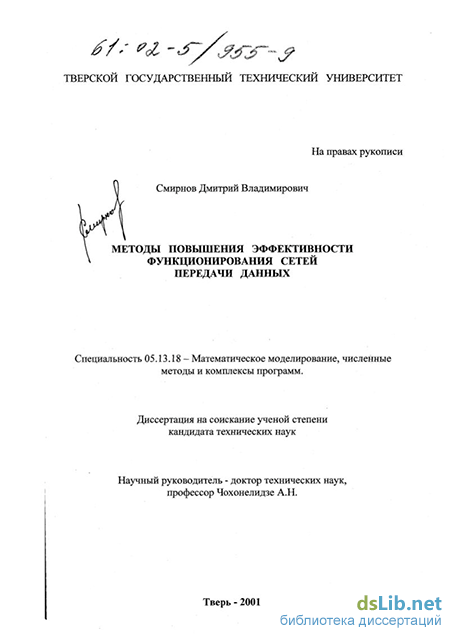 Смирнов Дмитрий Владимирович. Методы повышения эффективности функционирования сетей передачи данных : диссертация ... кандидата технических наук : 05.13.18.- Тверь, 2001.- 153 с.: ил. РГБ ОД, 61 02-5/955-9