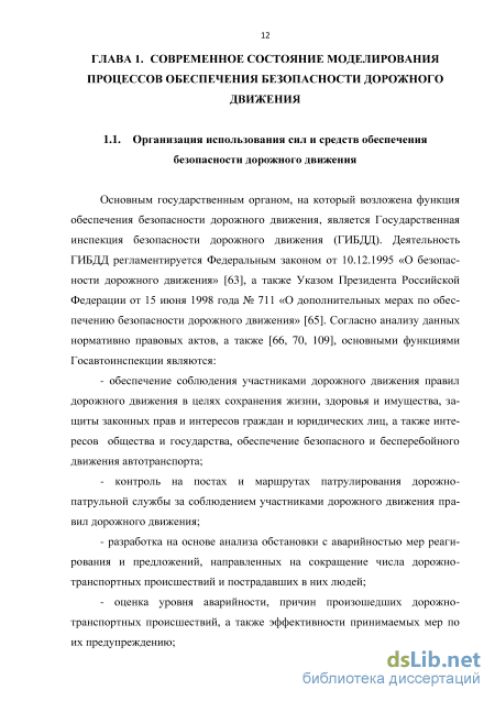 Глава 1. Современное состояние моделирования процессов обеспечения безопасности дорожного движения 12