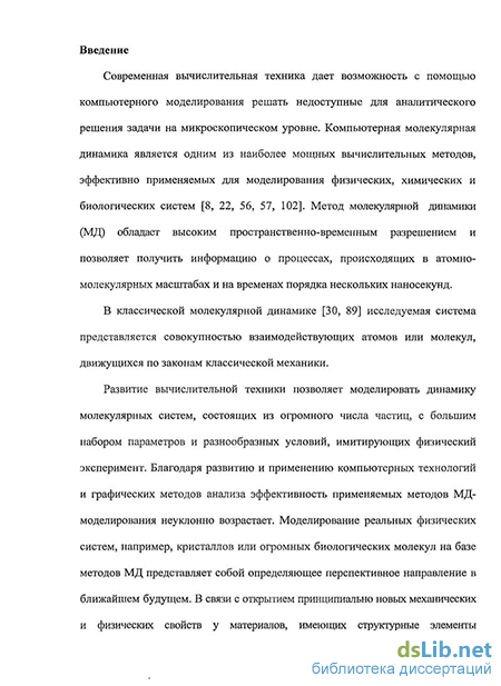 Потребности новейших технологий привели к исследованию ситуаций, для которых физические эксперименты крайне затруднены или неосуществимы, а чисто теоретический анализ слишком сложен. В настоящее время, благодаря стремительному развитию вычислительной техники, решать такого рода проблемы позволяет математическое моделирование с применением ЭВМ, которое во многих случаях оказывается единственным способом получения детальных количественных сведений о поведении сложных молекулярных систем, известных в природе или, что важнее, еще только планируемых к созданию. Компьютерное моделирование часто выступает в качестве связующего звена между теорией и физическим экспериментом. Это особенно важно тогда, когда в теории не удается отыскать точного аналитического решения сложных систем уравнений, описывающих поведение молекул.
