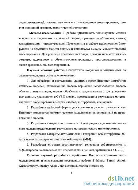 Методологической и теоретической основой диссертационной работы явились исследования российских и зарубежных ученых в области ин тернет-технологий, математического и компьютерного моделирования, теории машинной графики, аналитической геометрии.