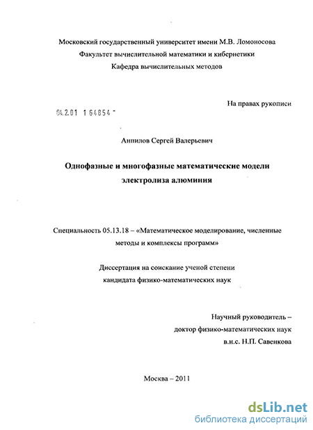 - Моделирование некоторых процессов, возникающих при промышленном производстве алюминия