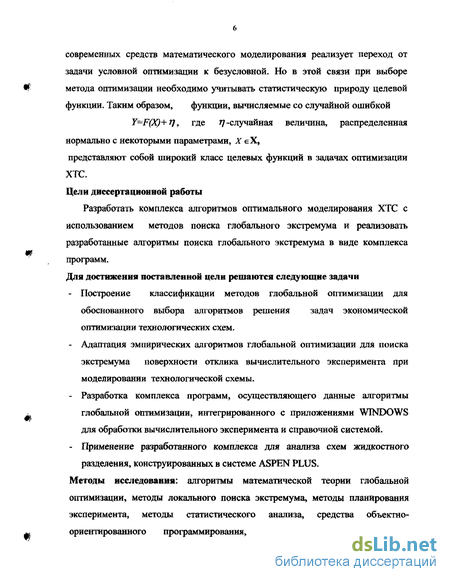 С другой стороны, современное состояние математической теории глобальной оптимизации таково, что при всем многообразии идей и методов, отсутствуют систематизированные данные об успешном применении теоретически исследованных алгоритмов к специфическим задачам прикладных областей. Отсутствуют также общие рекомендации по выбору наиболее эффективного МГО для той или иной задачи. При этом, для решения прикладных задач, в частности оптимизации ХТС, предпочтение отдается эмпирическому классу МГО. В этом случае существенный интерес представляет проблема выбора параметров алгоритма с целью обеспечения его эффективной работы. Наконец, знание структуры математической теории глобальной оптимизации помогло бы сделать обоснованный выбор в пользу какого-либо алгоритма с учетом специфики задачи оптимизации. Общность