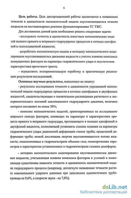 Цель работы. Цель диссертационной работы заключается в повышении точности и адекватности математической модели неустановившегося течения жидкости на нестационарных режимах функционирования ТС ТЖС.