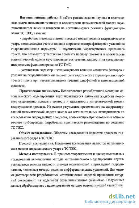 Предмет исследования. Предметом исследования являются математические модели гидравлического удара в ТС ТЖС.