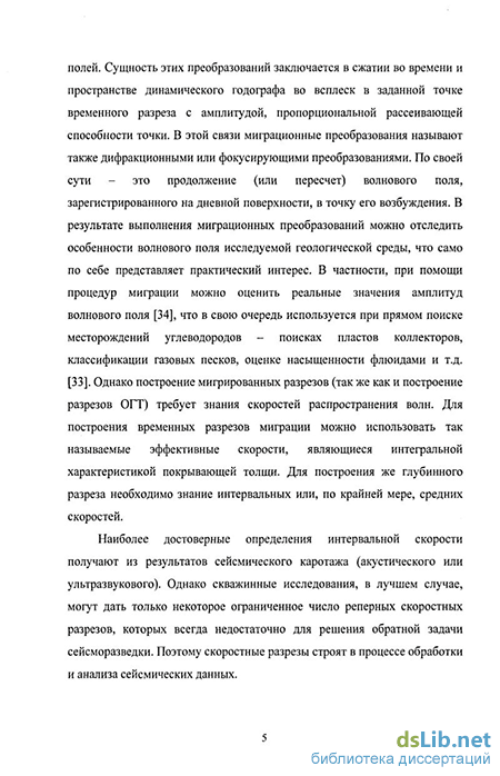 Теоретические основы одного из способов осуществления миграции разработал академик С В Гольдин Продолженное в нижнее полупространство волновое поле предложено им вычислять посредством некоторого интегрального преобразования сейсмических данных, зарегистрированных на дневной поверхности Им же получены формулы, связывающие эффективные скорости продолжения с пластовыми (интервальными) скоростями для системы наблюдений с одним источником сейсмических колебаний В свою очередь А А Тузовский разработал алгоритм вычисления эффективных скоростей продолжения волнового поля с использованием подобного интегрального оператора для многократной системы наблюдений Однако, задача вычисления интервальных скоростей для такой системы оставалась нерешенной