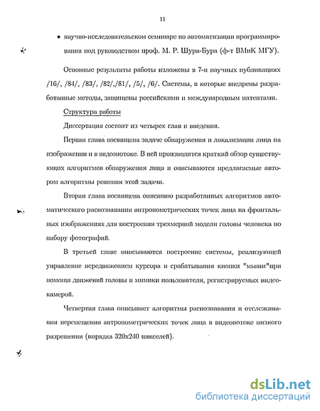 Решение двух первых задача является необходимым условием для создания интеллектуальных интерфейсов, распознающих и реагирующих на движения головой и изменение выражения лица пользователя. Решение второй задачи также необходимо для автоматизированного построения фотореалистичных моделей лиц для интерфейсов, использующих агентов виртуальной реальности. Решение третьей задачи делает возможным ис- 4 . пользование компьютера людьми, неспособными использовать традицион ные средства интерфейса но состоянию здоровья.