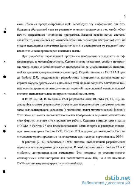 В работах [7, 32] говориться о DVM-системе, позволяющей разрабатывать параллельные программы для кластеров. В этой системе языки Fortran 77 и С снабжены дополнительными командами. Эти команды не воспринимаются стандартными компиляторами для последовательных ПК, но с их помощью DVM-компилятор генерирует параллельный код.