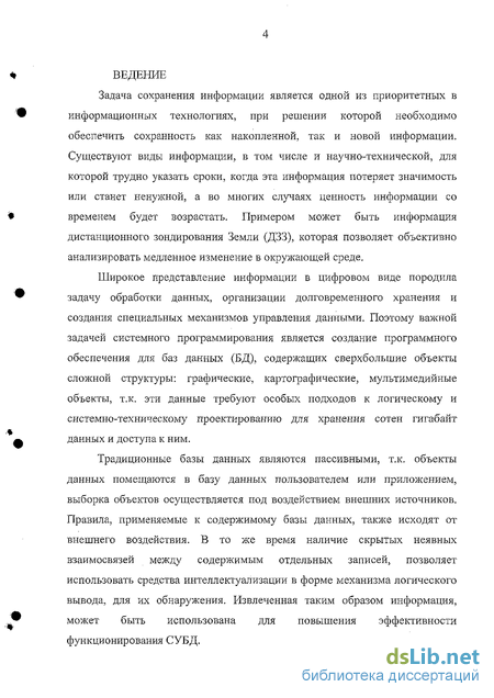 Широкое представление информации в цифровом виде породила задачу обработки данных, организации долговременного хранения и создания специальных механизмов управления данными. Поэтому важной задачей системного программирования является создание программного обеспечения для баз данных (БД), содержащих сверхбольшие объекты сложной структуры: графические, картографические, мультимедийные объекты, т.к. эти данные требуют особых подходов к логическому и системно-техническому проектированию для хранения сотен гигабайт данных и доступа к ним.