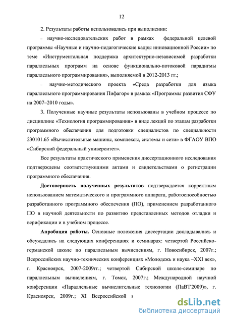 1 Путь выполнения параллельной программы выбирается автоматически [22, 32, 51, 68, 97-103, 134]. Достоинство: меньшее время, расходуемое на отладку. Недостаток: предоставляется только один случайный путь выполнения программы из множества путей. Для программы с явным параллелизмом возможна ситуация, когда в программе присутствует ошибка, но на автоматически выбранном пути она не возникает. В программе с неявным параллелизмом приведенная ситуация невозможна, так как порядок выполнения операторов из множества тех операторов, чьи входные данные известны, не влияет на вычисления.
