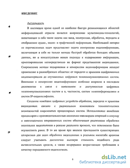 Создание новейших цифровых устройств обработки, передачи и хранения видеоданных связано с радикальным изменением технологических возможностей современных процессорных систем. Использование новейших процессоров с производительностью несколько миллиардов операций в секунду и многозадачных операционных систем обеспечивает реализацию обработки нескольких видеопотоков в режиме реального времени, что невозможно было осуществить ранее. В то же время при анализе пригодности существующих алгоритмов для задач обработки видеоданных в реальном масштабе времени следует учитывать достаточно высокую стоимость подобного рода вычислительных средств, а также непрерывно возрастающие требования к качеству передаваемого видеосигнала.