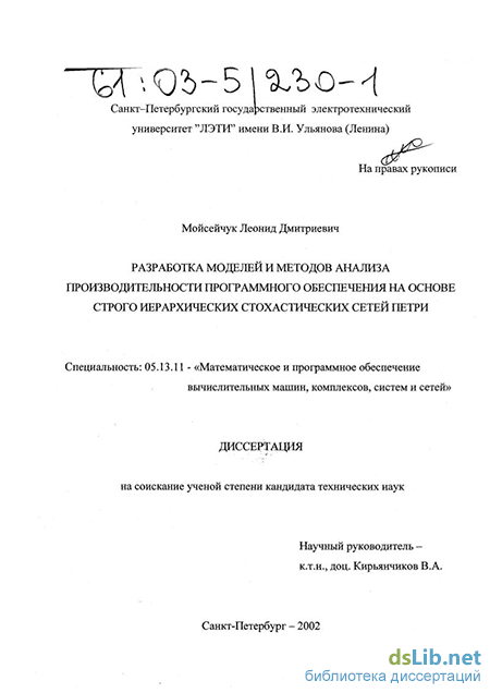 Нагрузка или параметры потребления ресурсов (в нашем случае - время) есть составляющая часть модели, представленной стохастической сетью Петри. Именно задание значений [95] нагрузки для программного обеспечения и определяют специфику анализа программной составляющей по сравнению с аппаратной.