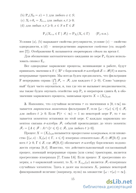 Методы исследовалил. В диссертшцни применены методы стохастического анализа; теория марковских процессов, теории мартингалов и стохастическое дифференциальное исчисление.