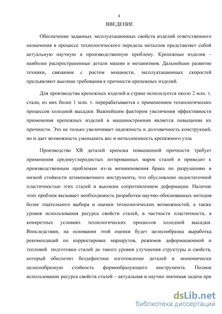 В машиностроении все более широкое распространение получают без- и малоотходные технологические процессы изготовления крепежных и т.п. изделий. Повышается уровень требований к эксплуатационным свойствам, в частности, к прочности. Высокопрочные крепежные изделия класса прочности 10.9 (в800 МПа) изготавливается из углеродистых, малолегированных сталей типа 16ХСН, 19ХГН, 20ХП2М, 25ХГТ, 30ХГТ, 35 селект, 38ХА, 38ХГНМ, 40Х, 40ХН2МА.