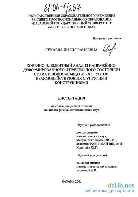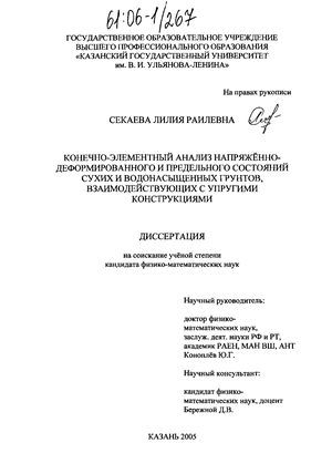 АПРОБАЦИЯ РАБОТЫ. Основные положения и результаты диссертационной работы по мере их получения докладывались и обсуждались на итоговой студенческой конференции (Казань, КГУ, 2002 г.); на международной молодёжной научной школе-конференции «Лобачевские чтения» (Казань, КГУ, 2002-2003 г.г.); на конференции «Наука и практика. Диалоги нового века» (Набережные Челны, 17-19 марта, 2003 г.); на городской научно-практической конференции «Студенты Зеленодольску» (Зеленодольск, 12 апреля, 2003 г.); на XV Всероссийской межвузовской научно-технической конференции (Казань, 20-22 мая, 2003 г.); на Тринадцатой Межвузовской конференции «Математическое моделирование и краевые задачи» (Самара, 29-31 мая, 2003 г.); на Двенадцатой Международной конференции по вычислительной механике и современным прикладным программным системам (Владимир, 30 июня-5 июля, 2003 г.); на XX Международной конференции «Математическое моделирование в механике сплошных сред. Методы граничных и конечных элементов» (Санкт-Петербург, 24-26 сентября, 2003 г.); на итоговой научной конференции 2003 г. Казанского научного центра РАН (Казань, 2004 г.); на Пятой конференции пользователей программного обеспечения CAD-FEM GmbH (Москва, 21-22 апреля, 2005 г.); на городском научно-методическом семинаре кафедр теоретической механики (Казань, 31 мая, 2005 г.); на Всероссийской научной конференции «Математическое моделирование и краевые задачи» (Самара, 1-3 июня, 2005 г.); на ежегодных итоговых научных конференциях Казанского государственного университета (Казань, КГУ, 2003-2005 г.г.). на семинаре кафедры теоретической механики КГУ и лаборатории механики оболочек НИИММ им. Чеботарёва Н. Г. (Казань, КГУ, 2005 г.).
