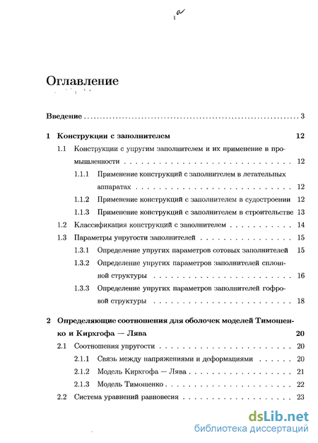 В главе 1 дается общий обзор применений конструкций с заполнителями в различных областях, приводится их классификация, а также выражения для расчета упругих характеристик различных видов заполнителей.