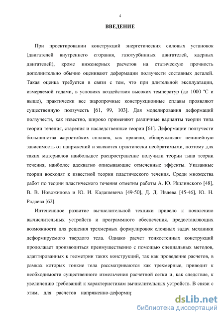 Актуальность темы. При проектировании конструкций энергетических силовых установок (двигателей внутреннего сгорания, газотурбинных двигателей, ядерных двигателей), кроме инженерных расчетов на статическую прочность дополнительно обычно оценивают деформации ползучести составных деталей. Такая оценка требуется в связи с тем, что при длительной эксплуатации, измеряемой годами, в условиях воздействия высоких температур (до 1000 С и выше), практически все жаропрочные конструкционные сплавы проявляют существенную ползучесть. Для моделирования деформаций ползучести, как известно, широко применяют различные варианты теории типа теории течения, старения и наследственные теории. Деформации ползучести большинства жаростойких сплавов, как правило, обнаруживают нелинейную зависимость от напряжений и являются практически необратимыми, поэтому для таких материалов наибольшее распространение получили теории типа теории течения, наиболее адекватно описывающие отмеченные эффекты. Указанные теории восходят к известной теории пластического течения. Среди множества работ по теории пластического течения, отметим работы А. Ю. Ишлинского, В. В. Новожилова и Ю. И. Кадашевича, Д. Д. Ивлева, Ю. Н. Радаева.