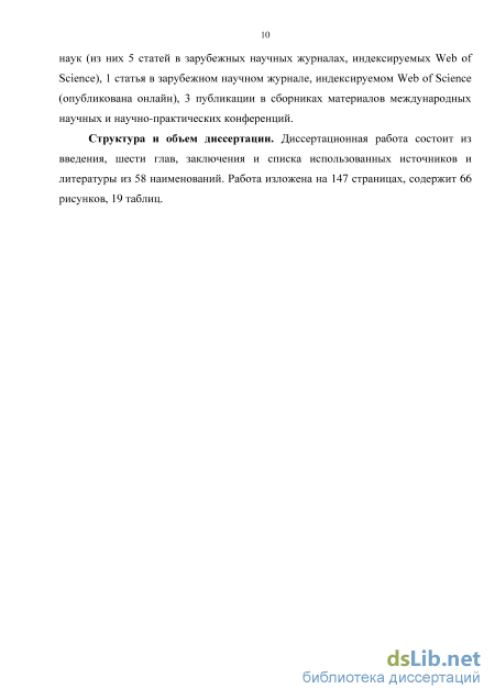 Структура и объем диссертации. Диссертационная работа состоит из введения, шести глав, заключения и списка использованных источников и литературы из 58 наименований. Работа изложена на 147 страницах, содержит 66 рисунков, 19 таблиц.