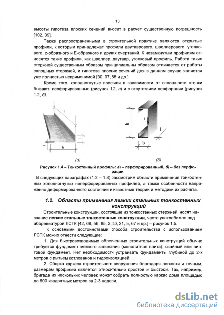 В последние годы в России и за рубежом в строительной индустрии наблюдается широкое применение легких стальных тонкостенных конструкций (ЛСТК), рис 1., состоящих из тонкостенных стержней (рис. 2), имеющие ряд технологических и эксплуатационных достоинств (легкость, быстровозводимость, возможность эффективного ремонта и реконструкции, широкие возможности для архитектурно-планировочных решений и т.д.).
