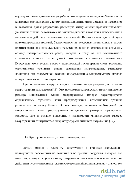 Разброс значений ресурса конструкций в основном определяется на стадии накопления повреждения и развития микротрещины [1]. Большая сложность получения статистической информации о накоплении повреждений в элементах структуры металла, отсутствие разработанных надежных методик и обоснованных критериев, составляющих систему признаков диагностики металла, не позволяют в настоящее время разработать расчетную схему оценки продолжительности указанной стадии, основываясь на закономерностях накопления повреждений в металле при действии переменных напряжений. Использование для этой цели полуэмпирических моделей, базирующихся на ресурсных испытаниях, в случае прогнозирования индивидуального ресурса приводит к неоправданно большому объему экспериментальных работ, которые к тому же для значительного количества сложных конструкций выполнить практически невозможно. Вследствие этого весьма важно с практической точки зрения уметь корректно статистически оценивать стадии зарождения макротрещины, располагая доступной для современной техники информацией о микроструктуре металла конкретного элемента конструкции.