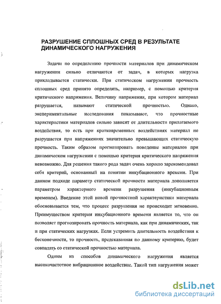 Научная новизна. Предложена модификация критерия инкубационного времени при разрушении сплошных сред вибрационной нагрузкой.