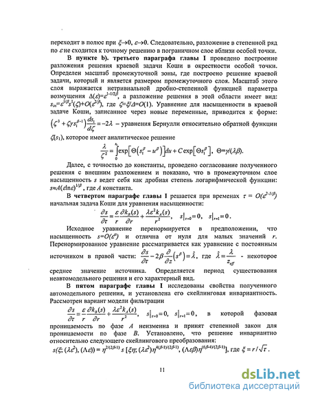Итак, для времен т Яр , что соответствует согласно результатам численной схемы счета временам Г=10, 0.9, 0.34, 0.13, 0.091, 0.0037 соответственно, краевая задача имеет неавтомодельное решение, которое описывает нарастающий профиль насыщенности новой фазы. Бутузов В.Ф., 1973] и С.А. Ломова [Ломов С.А., 1968] показано, что данный пограничный слой возникает в результате решения краевой задачи для нелинейного дифференциального уравнения первого порядка с множителем 3 + sy%sp x при производной. Точка =0 в этом уравнении является особой точкой, для которой, в частности, дополнительное условие теряется. В промежуточной области, согласно Ильину A.M., решение ведет себя как дробная степень логарифмической функции: s A{dns)vp, где А константа. При этом размер промежуточной области является нетривиальной дробно-степенной функцией малого параметра: A(s)= 1/2f .