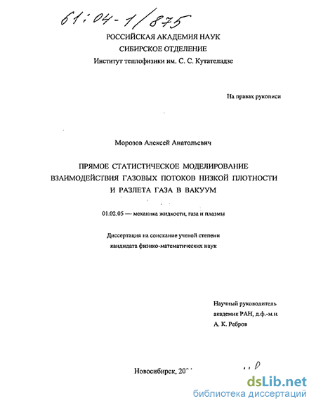 1. Метод прямого статистического моделирования (ПСМ) 6