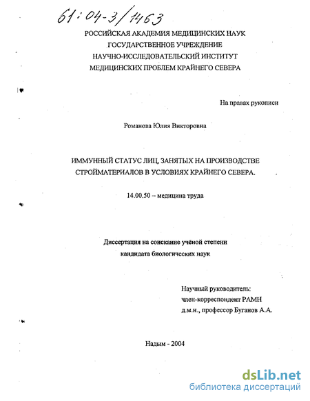 Массовые иммунологические исследования иммунопатологии работающих в условиях воздействия разных профессионально- *» производственных факторов и внешнего окружения имеют большое социальное значение и актуальность для практического здравоохранения в связи с возможностью профилактической направленности и предотвращения развития и хронизации производственно-обусловленных заболеваний. Выявляемость иммунопатологических синдромов в группе отобранной популяции, частота установленных форм иммунопатологии, определение наиболее уязвимых звеньев иммунитета - все это как отражение состояния иммунитета обследуемого контингента, определяет значимость и актуальность иммунологических исследований среди работников промышленных предприятий. *> Все вышеизложенное определило наш интерес к исследованию иммунного статуса работников промышленного предприятия в условиях Крайнего Севера на примере пришлого населения г. Надыма ЯНАО, работающего на заводе крупнопанельного домостроения.