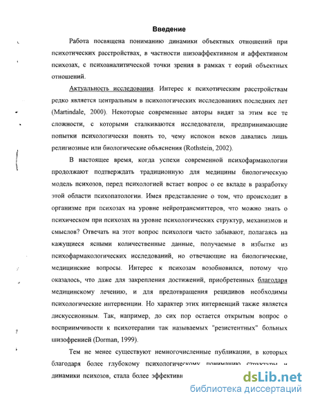 ЧАСТЬ I STRONG . Теоретические основы исследования объектных отношений упациентов с шизоаффективным и аффективным психозами.