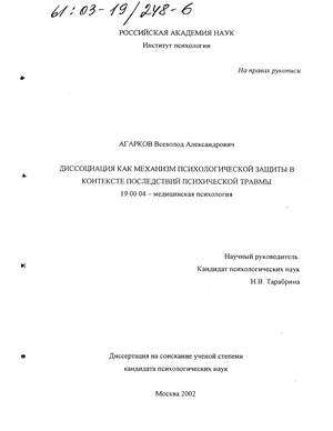 В отечественной психологической науке тема диссоциации до сих пор не нашла должного отражения, хотя отдельные диссоциативные феномены, например, психогенная амнезия, состояния деперсонализации/дереализации, изменения личностной идентичности и т.д., — являлись предметом исследований
