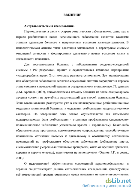 Включение мероприятий по коррекции психологических факторов риска рецидива и дезадаптации больных, перенесших инфаркт миокарда, в настоящее время признается важной предпосылкой эффективности лечебного и реабилитационного процессов (Шхвацабая И.К., 1978; Аронов Д.М., 2003; King K.M., 2001; Welton N.J., 2009). Очевидно, что учёт психологических аспектов патогенеза заболевания, особенностей личности больного, его отношения к заболеванию и лечению позволил бы повысить точность диагностической работы и эффективность лечебных и реабилитационных мероприятий, одной из задач которых становится оптимизация активности больного при изменённом болезнью состоянии организма, то есть адаптация пациента к непривычным условиям жизнедеятельности. Особое значение при сопровождении пациента с сердечно-сосудистой патологией приобретают психологические методы коррекции поведенческих стереотипов больного, способствующих риску усугубления тяжести болезни, препятствующих адекватной приверженности лечению и исполнению врачебных рекомендаций.
