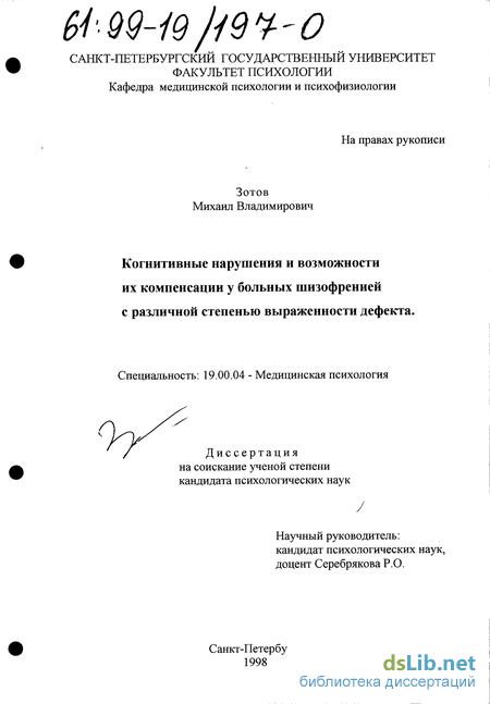 1.1. Клинико-психологические особенности дефекта при шизофрении 10