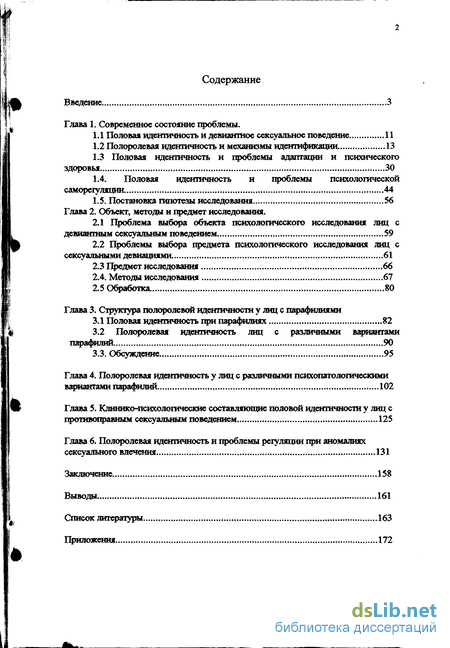 1.1 Половая идентичность и девиантное сексуальное поведение 11