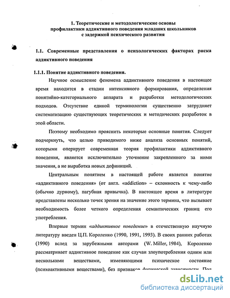 1. Теоретические и методологические основы профилактики аддиктивного поведения младших школьников с задержкой психического развития 9