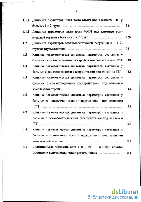 4.9 Сравнительная эффективность ПФТ, РТГ и КТ при сомато-формныхи психосоматических расстройствах 151