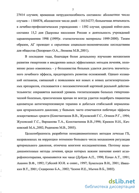 Целесообразность разработки немедикаментозных методов лечения ГБ, направленных на коррекцию возможно большего числа механизмов регуляции артериального давления, отмечена многими исследователями. Поэтому немедикаментозные методы лечения, среди которых важное значение имеет иглорефлексотерапия, применяются все чаще (Губский Ю.И. и соавт., 1997; Бувальцев В.И., 2001; Ивашкин В.Т., 2001; Сидоренко Б.А., 2002; Чазова И.Е., Мычка В.Б., 2002).
