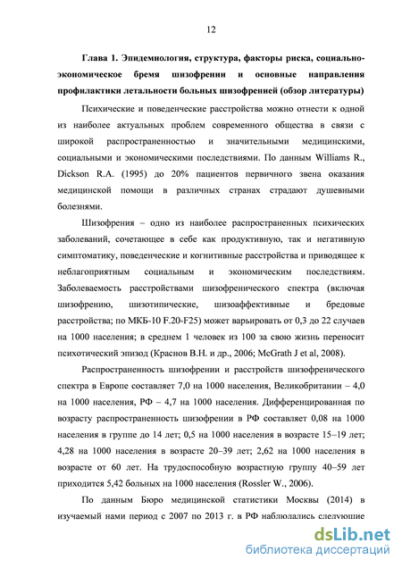 Глава 1. Эпидемиология, структура, факторы риска, социально- экономическое бремя шизофрении и основные направления профилактики летальности больных шизофренией 12