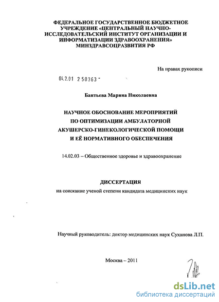 Цель исследования: На основе комплексного изучения уровня и структуры гинекологической и акушерской патологии, а также организации амбулаторной помощи, научно обосновать мероприятия по оптимизации амбулаторной акушерско-гинекологической помощи и её нормативного обеспечения.