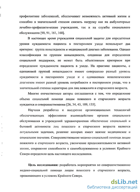Цель исследования: разработать мероприятия по совершенствованию медико-социальной помощи лицам пожилого и старческого возраста, проживающим в условиях Крайнего Севера.
