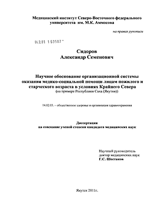 - определены мероприятия по оптимизации медико-социальной помощи лиц пожилого и старческого возраста в Республике Саха (Якутия) с учетом региональных особенностей.