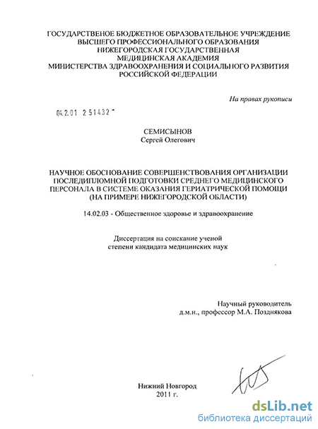 - изучено современное состояние организации последипломной подготовки специалистов здравоохранения со средним медицинским образованием в системе оказания гериатрической помощи (на примере НО) и определены ее актуальные проблемы;