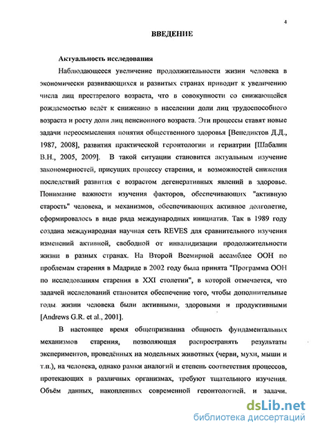 Наблюдающееся увеличение продолжительности жизни человека в экономически развивающихся и развитых странах приводит к увеличению числа лиц пожилого и старческого возраста, что в совокупности со снижающейся рождаемостью ведёт к снижению в населении доли лиц трудоспособного возраста и росту доли лиц пенсионного возраста. Эти процессы ставят новые задачи переосмысления понятия общественного здоровья [Венедиктов Д.Д., 1987, 2008], развития практической геронтологии, гериатрии [Шабалин В.Н., 2005, 2009]. В такой ситуации становится актуальным изучение закономерностей, присущих процессу старения, и возможностей снижения последствий развития с возрастом дегенеративных явлений в здоровье. Понимание важности изучения факторов, обеспечивающих "активную старость" человека, и механизмов, обеспечивающих активное долголетие, сформировалось в виде ряда международных инициатив. Так в 1989 году создана международная научная сеть REVES для сравнительного изучения изменений активной, свободной от инвалидизации продолжительности жизни в разных странах. На Второй Всемирной ассамблее ООН по проблемам старения в Мадриде в 2002 году была принята "Программа ООН по исследованиям старения в XXI столетии", в которой отмечается, что задачей исследований становится обеспечение того, чтобы дополнительные годы жизни человека были активными, здоровыми и продуктивными [Andrews G.R. et al., 2001]. Ведутся масштабные международные исследования по изучению влияния заболеваемости, инвалидизации, смертности пожилого населения на продолжительность общей и здоровой жизни и влияния этих процессов на человеческое общество [Christensen K. et al., 2009].