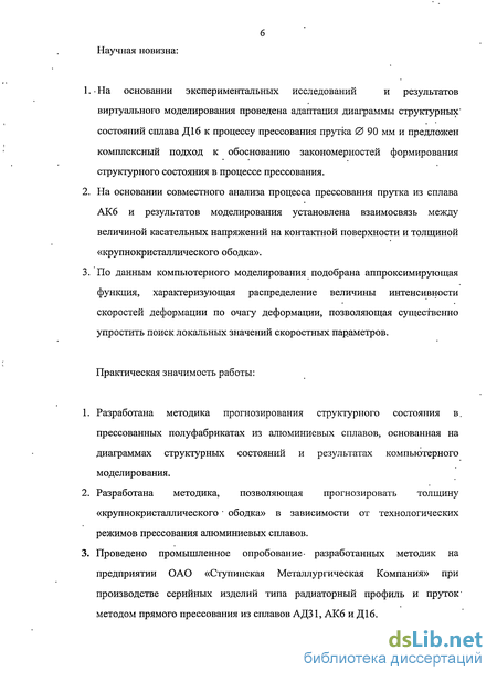 Глава VI Разработка методики прогноза структурного состояния на примере процесса прессования сложного профиля 98