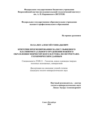Актуальность темы. Для России, одного из ведущих мировых производителей металлов платиновой группы (МПГ), поиск и разведка месторождений этих ценных и стратегически важных металлов является актуальной проблемой. Мончегорский район, отличающийся платинометальной специализацией, представляет перспективный объект, не только благодаря наличию многочисленных проявлений МПГ, но и ввиду высокоразвитой инфраструктуры.